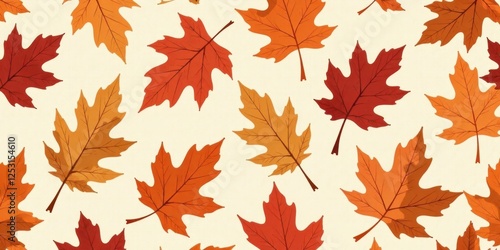 Vibrant Autumn Leaves Seamless Pattern Featuring a Delightful Array of Orange and Red Hues on a Soft Beige Background Ideal for Seasonal Designs and Festive Projects