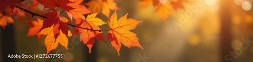 Vibrant autumn leaves sway gently on a branch , red, colorful