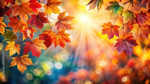 Vibrant autumn leaves with bright highlights shining through, creating a beautiful contrast in the fall foliage