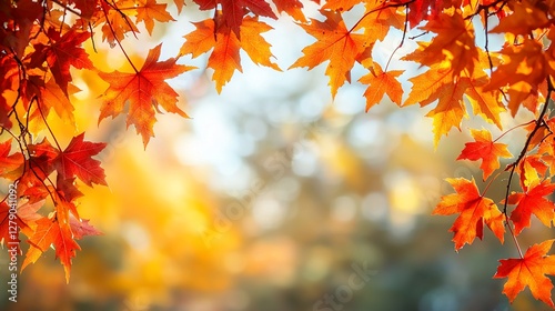 Vibrant autumn maple leaves frame a sunlit background.