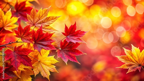 Vibrant Autumn Maple Leaves Macro Photography: Thanksgiving Background with Copy Space