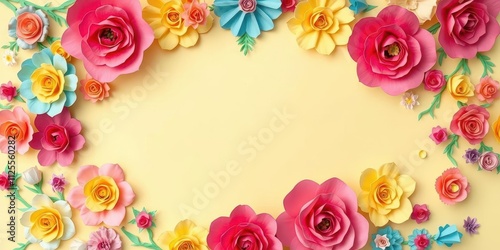 Vibrant backdrop of multicolored paper roses, pattern, handmade