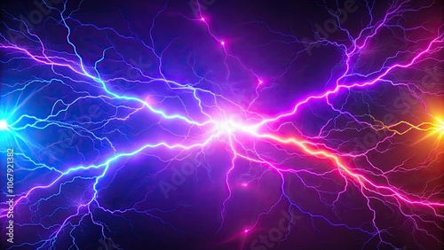 Vibrant background with lightning bolts on violet, colorful neon light, electrical texture, high energy