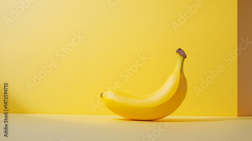Vibrant banana rests against bright yellow background, creating cheerful and fresh atmosphere