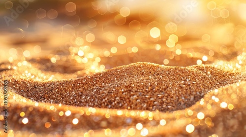 Vibrant beach setting featuring warm, hot sand and a sunny bokeh effect that creates a glowing, inviting look. Close-up photo with clean background