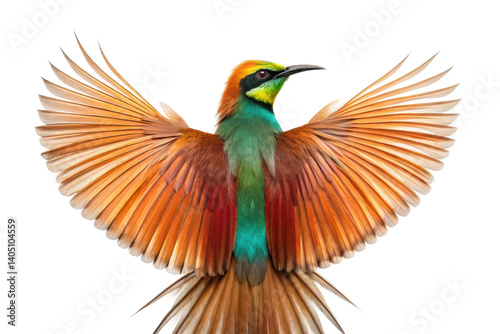 Vibrant bird displaying its colorful wings in natural habitat during daylight