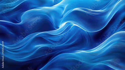 Vibrant blue abstract wave patterns flowing across the horizontal frame, creating a dynamic background