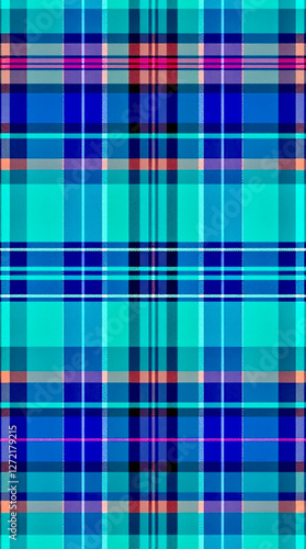 Vibrant blue and green tartan pattern showcasing a bold plaid design with contrasting colors for creative projects