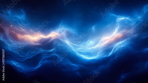 Vibrant blue and orange cosmic waves swirling in the depths of space, creating a captivating celestial atmosphere at night