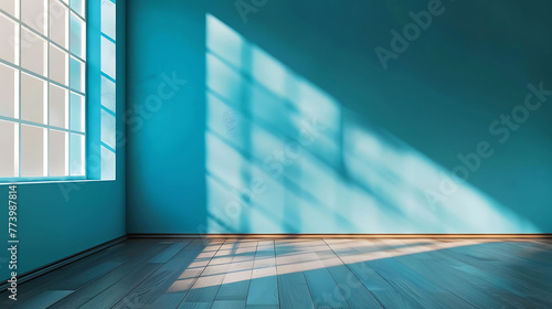 Vibrant blue empty room with glossy floor reflecting the uniform color of walls and ceiling