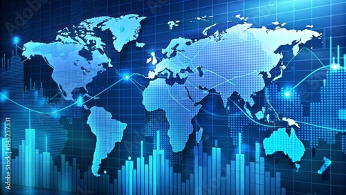 Vibrant blue illustration of a global trading schedule featuring a stylized world map surrounded by financial charts, graphs, and market data on a transparent background.