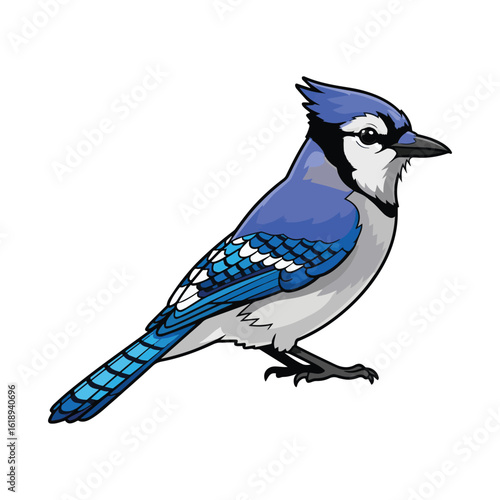 Vibrant Blue Jay Perched on a Branch with Detailed Feather Patterns