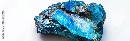 Vibrant blue mineral with crystalline structure, isolated on white background. Jewelry, gem, and geology use