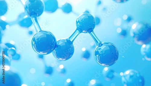 Vibrant blue molecular structure illustrating fundamental scientific concepts, advanced research, and the intricate building blocks of matter and innovative technology