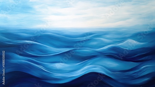 Vibrant Blue Ocean Waves in Horizontal Swells with Subtle Lighter Sky Reflection and Smooth Textures Capturing Serenity and Depth