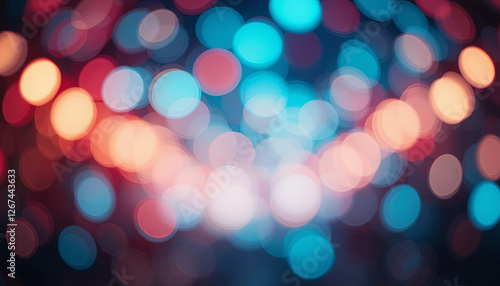 Vibrant bokeh lights illuminate the night at a lively urban gathering. The colorful orbs blur together, creating a festive and enchanting ambiance that attracts attention