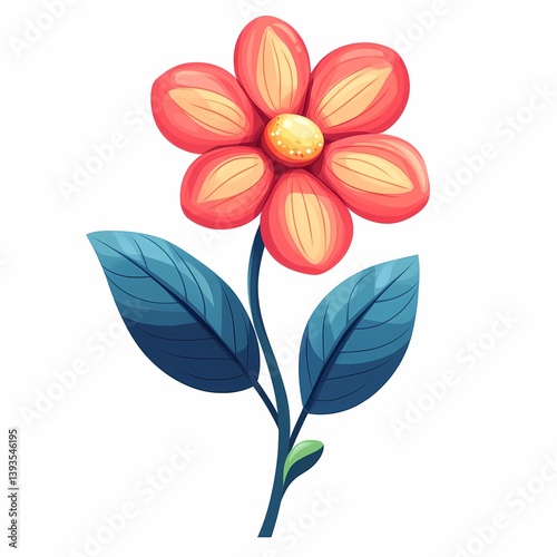 Vibrant Botanical Illustration: Hand-Drawn Single Flower with Colorful Petals in Spring Nature Art
