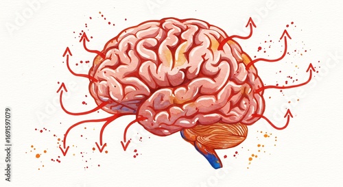 Vibrant Brain Illustration Shows Energetic Neural Connections Through Bold Arrows and a Vivid Color Palette