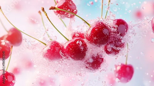 Vibrant Cherries Splashing Joyfully in Sparkling Water: Close-Up Photo. AI Generated
