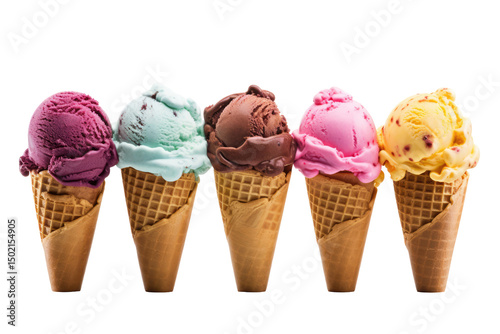Vibrant Chocolate Ice Cream Scoops in Colorful Shades on transparent background on transparent background