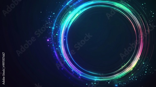 Vibrant Circles of Light: An Abstract Exploration of Blue-Green Patterns in a Futuristic Digital Space, Merging Music, Modern Science, and AI Technology