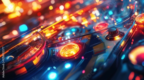 Vibrant close-up of a colorful pinball machine in action.