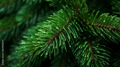 Vibrant closeup of pine needles on a lush tree, showcasing the detailed texture and evergreen beauty with pine tree concept.