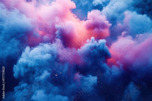 Vibrant clouds swirl in a stunning blend of pink and blue hues, creating a mesmerizing and ethereal atmosphere.