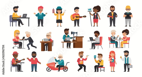 Vibrant collection of diverse people engaged in various daily activities and professions