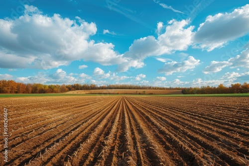 Vibrant Color Picture of Large Empty Farm Field for Autumn Harvest
