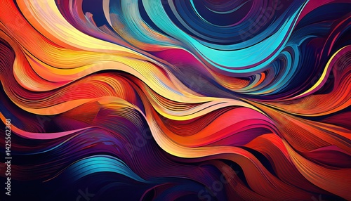 Vibrant Color Spectrum Swirls in a Mesmerizing Dance of Form and Shape, Creating an Immersive Artistic Landscape for Digital Art, Home Decor, and Design Inspiration.