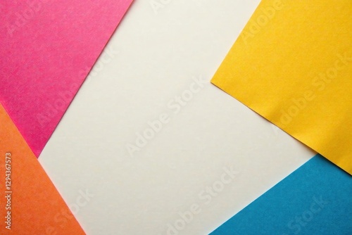 Vibrant Colored Paper Sheets Arranged in a Modern Abstract Composition with Central White Space for Text or Design Elements