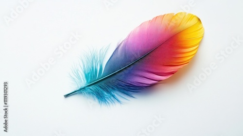 Vibrant Colorful Feather Displaying Rainbow Shades on White Background