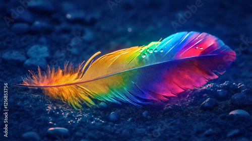 Vibrant Colorful Feather in Macro Close Up with Iridescent Detail and Artistic Background