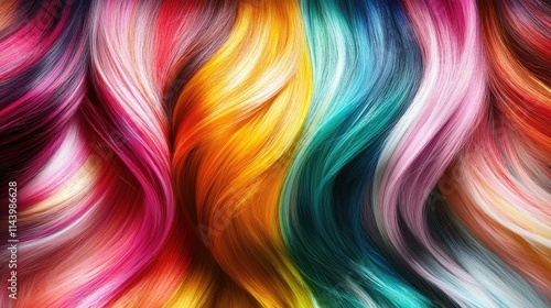 Vibrant Colorful Hair Strands in Artistic Waves and Flowing Patterns