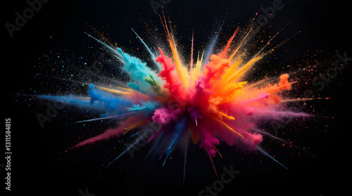Vibrant Colorful Powder Explosion - Abstract Dynamic Art on Black Background