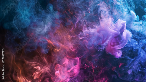 Vibrant, colorful smoke swirling against a dark background. Abstract and dynamic, perfect for adding a creative touch to designs or as a visually striking backdrop.