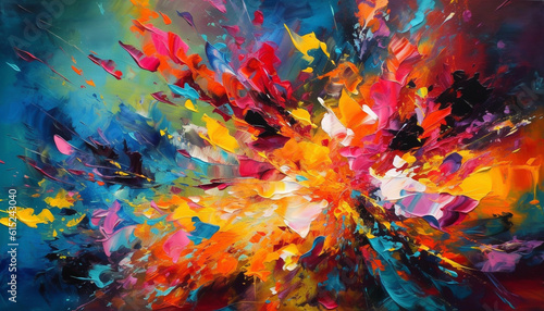 Vibrant colors splash in chaotic composition, a modern celebration generated by AI
