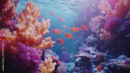 Vibrant coral reef ecosystem teeming with colorful fish and marine life