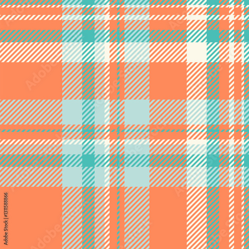 Vibrant coral, teal, and cream plaid pattern. Perfect for textile design, fashion, websites, and branding. A cheerful, modern take on a classic style evokes feelings of warmth and summer.