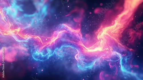 Vibrant cosmic cloudscape with ethereal colors in shades of pink and blue