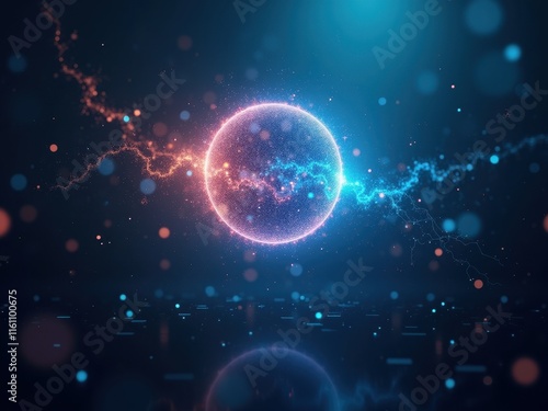 Vibrant cosmic energy sphere with electric currents illuminating dark space