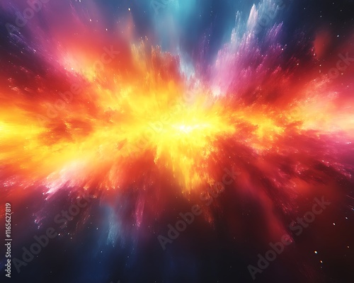 Vibrant cosmic explosion, nebula, colorful energy burst.