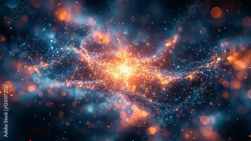 Vibrant cosmic explosion of orange and blue particles, creating a mesmerizing nebula effect, perfect for science, technology, and space-themed projects.