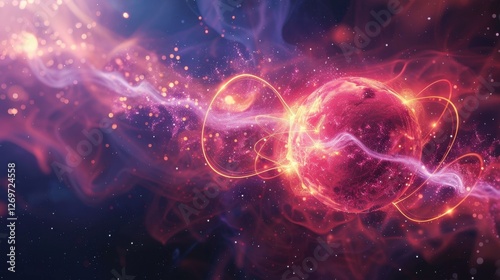 Vibrant Cosmic Landscape Featuring a Galactic Sphere Surrounded by Ethereal Light Trails and Celestial Energy Pulses