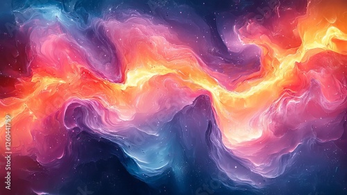 Vibrant cosmic nebula swirling with fiery orange and deep blue hues, evoking a sense of wonder and exploration in the universe.