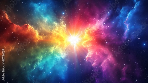 Vibrant Cosmic Nebula with Bright Stars, A vibrant cosmic nebula with bright stars and colorful gas clouds in space