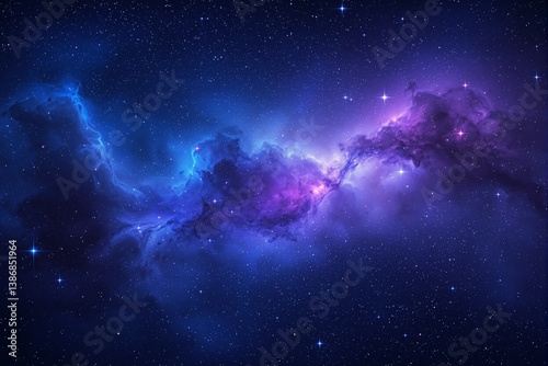 Vibrant cosmic nebula with bright stars and swirling purple-blue clouds in deep space, in a dreamy creative style on a starry background. Ai generative