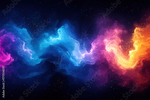 Vibrant cosmic nebula with swirling colorful gases and sparkling stars.