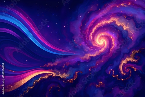 Vibrant Cosmic Swirl Abstract Nebula Background with Glowing Stars and Energy Waves
